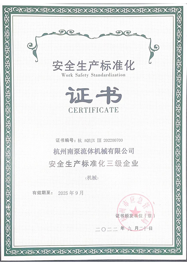 安全生產標準化證書
