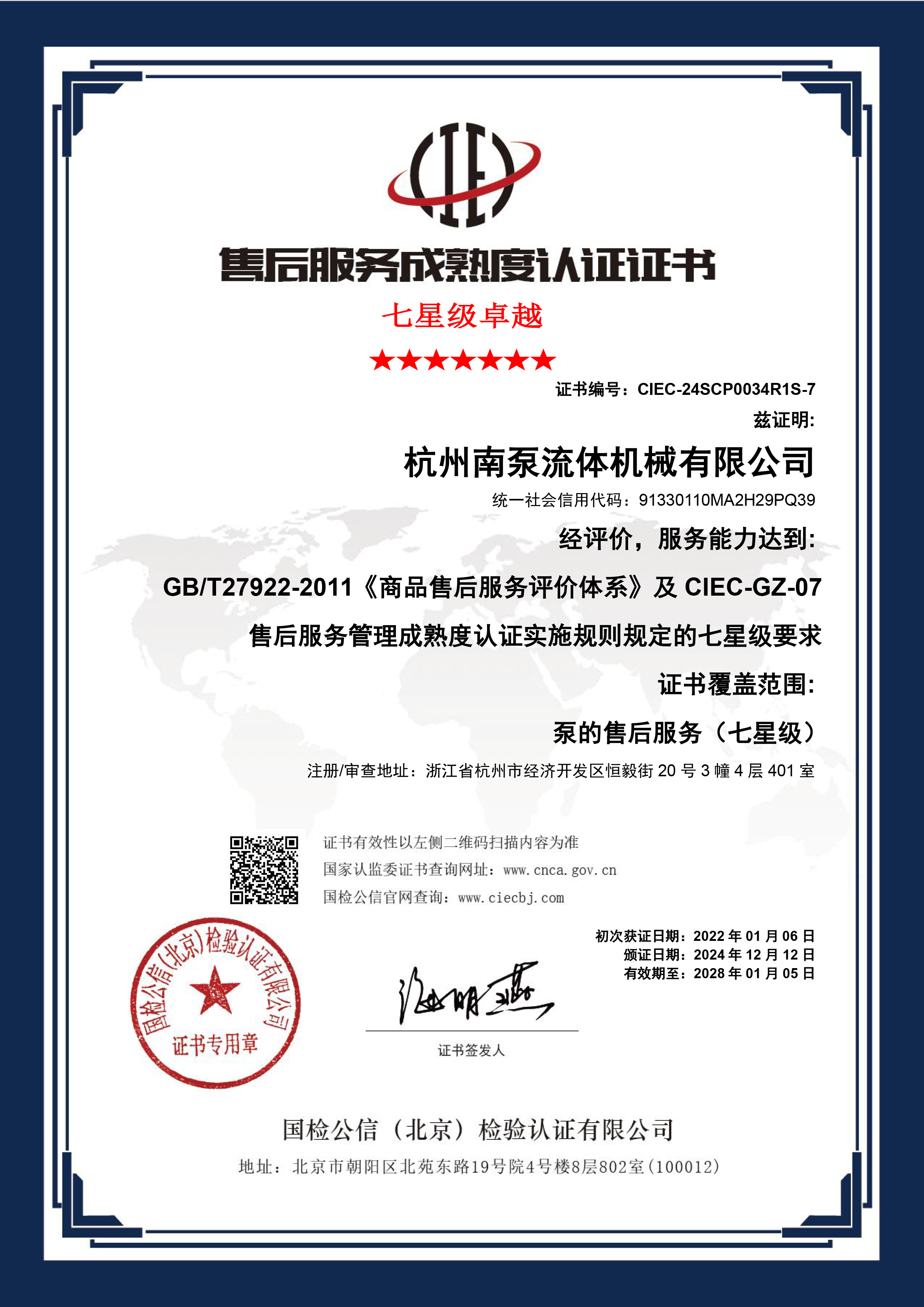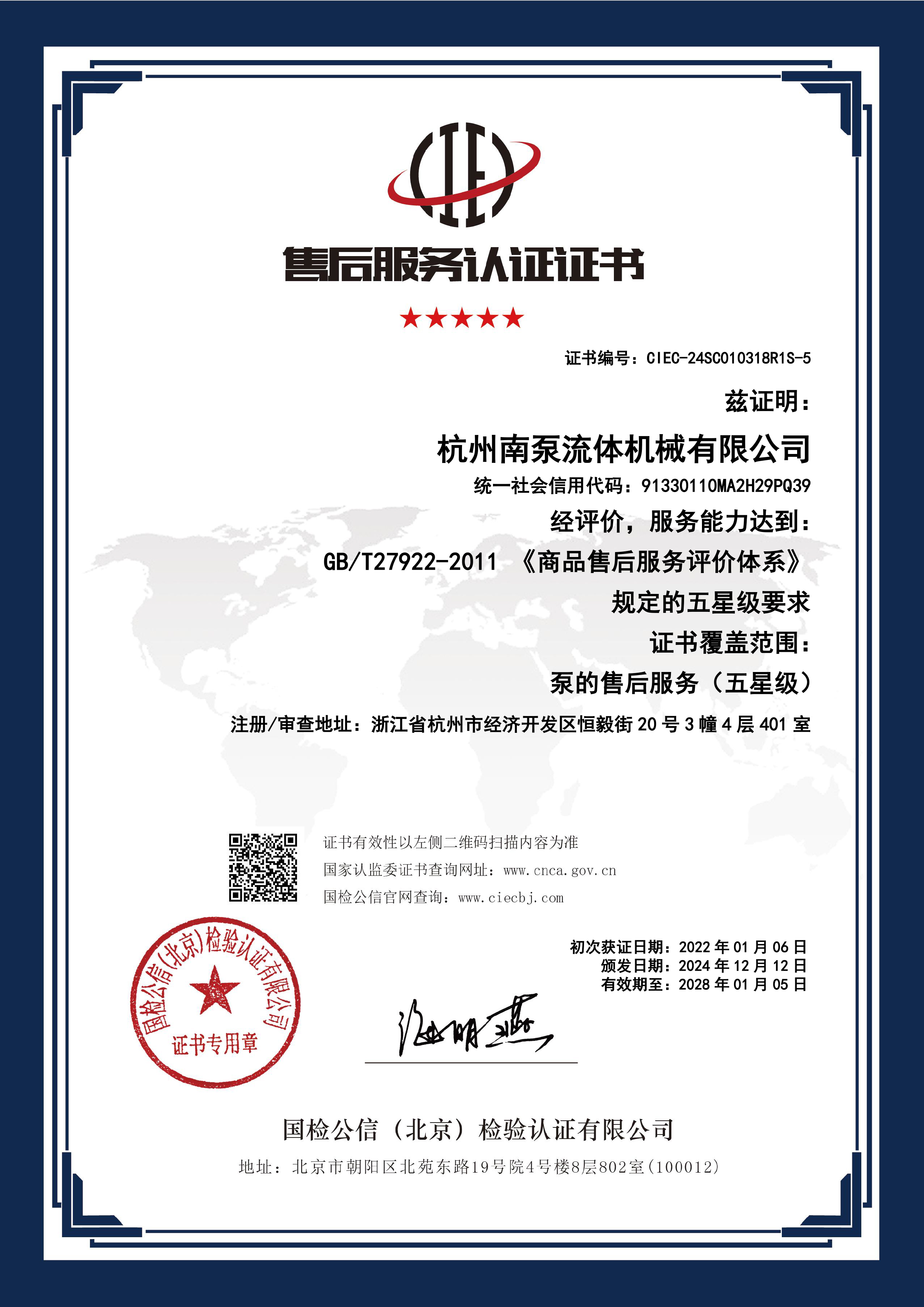 售后五星&七星服務證書